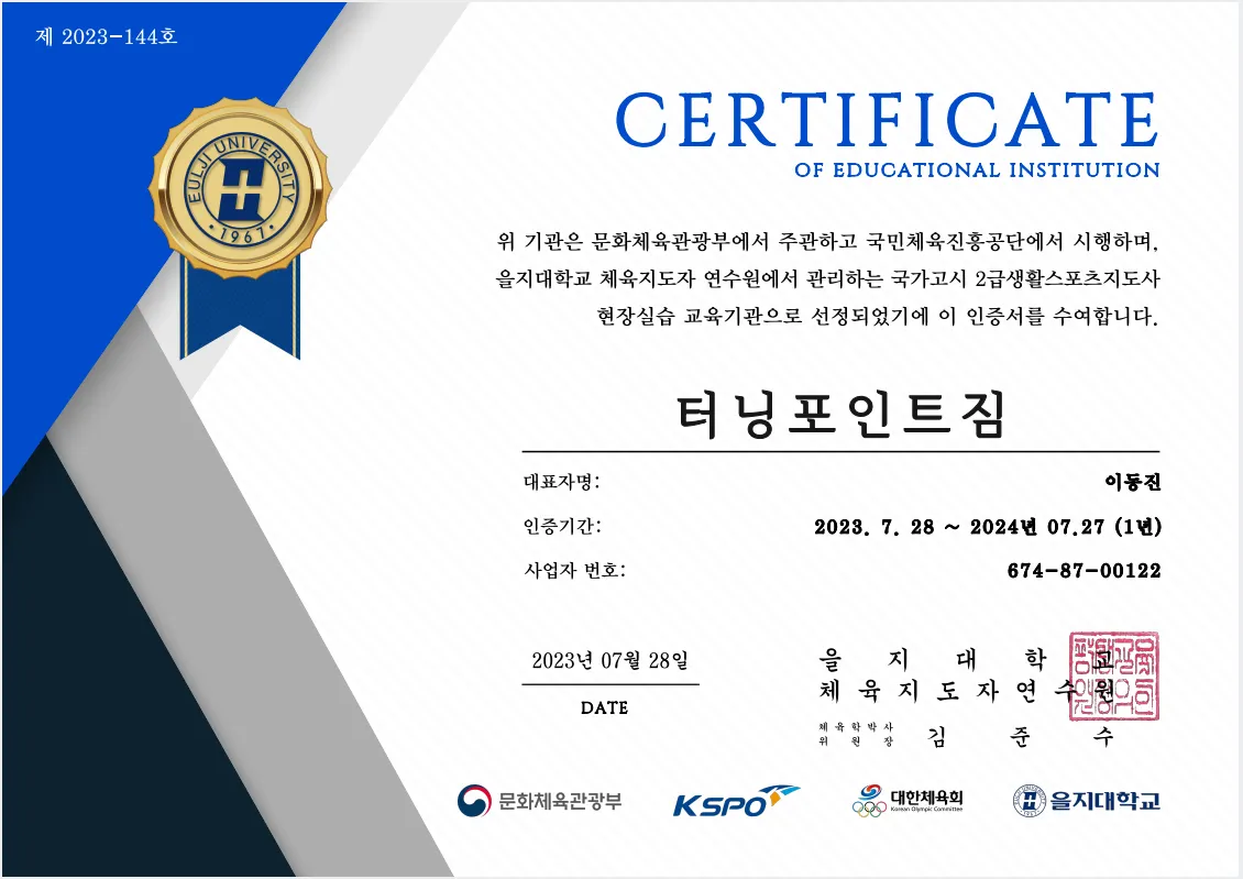 터닝포인트짐만의 교육 커리큘럼이 있답니다^^